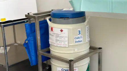 Der andere Patient soll heute genau um 15:05 Uhr sein CAR-T-Zellen behandeltes Blut zurück per Infusion bekommen.